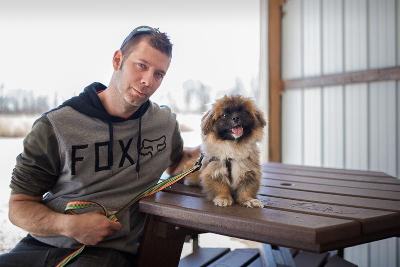 I own a miniature zoo with my fiance Adam. He is also my on location assistant during portrait sessions. He is the spare leash holder, slobber assistant, puppy runner, and the giver of treats.