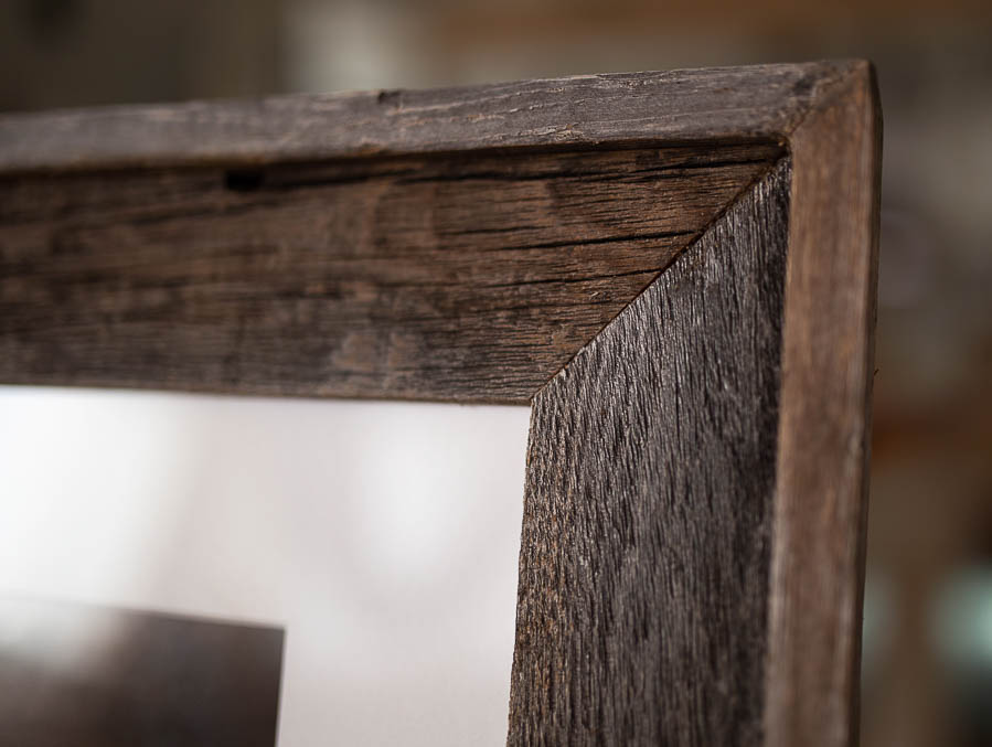 Our barnwood frame is created from reclaimed wood recovered from old barns.
